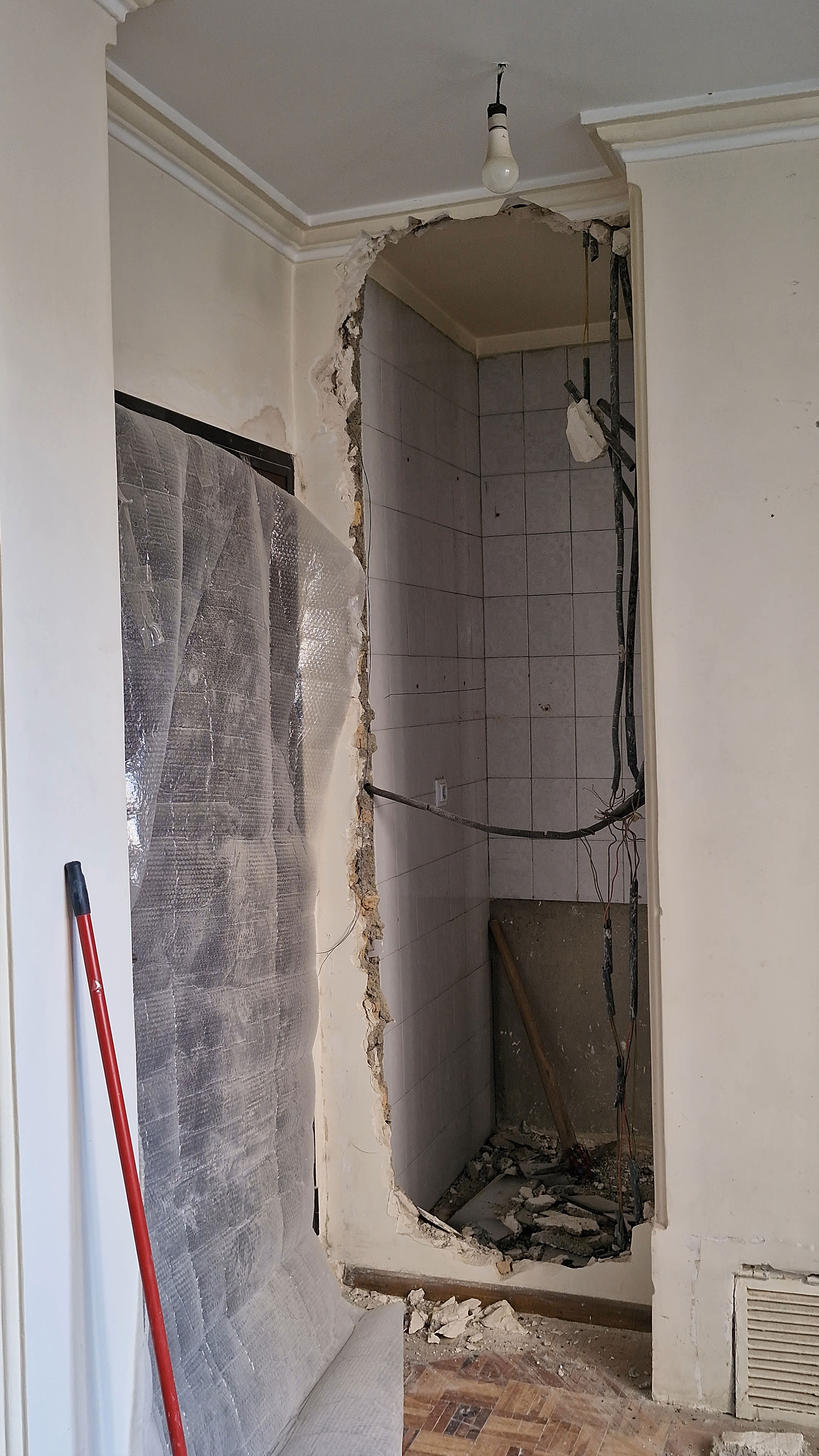 واحد آقای شکوهی بهطور کامل بازسازی شد؛ شامل رنگآمیزی تمامی فضاها، ترمیم کف و پارکت، بازسازی سرویس بهداشتی و حمام، اصلاح و تعویض کابینتها و سرامیکهای آشپزخانه، اصلاح پنجرهها و دربها و طراحی فضای انباری و جا کفشی. لولهها، فاضلاب و سیمکشی برق نیز با دقت تعویض شد تا محیطی نو، زیبا و کارآمد ایجاد شود.